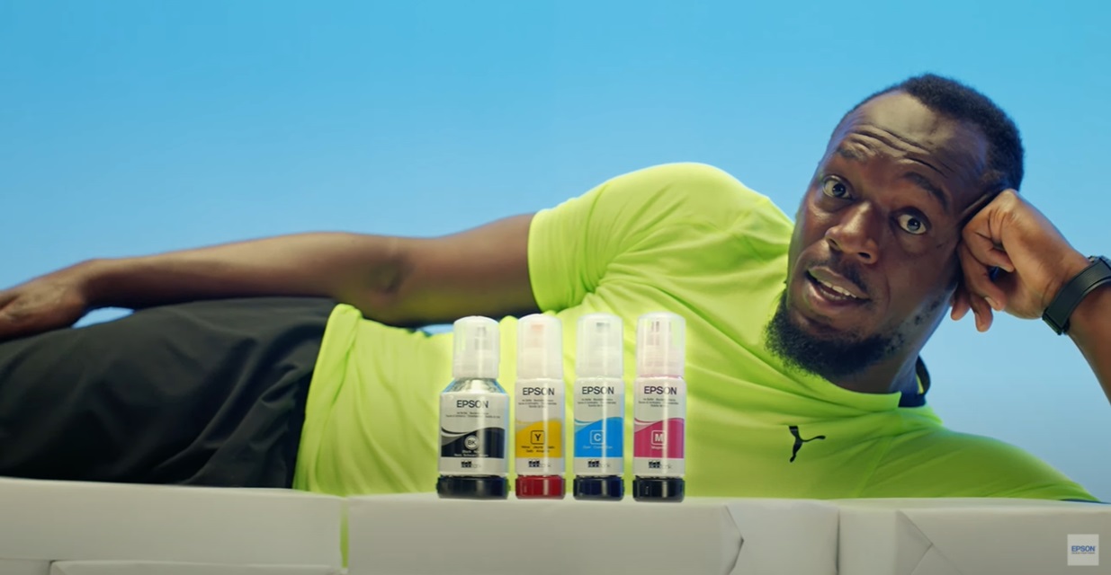 Usain Bolt, the face of a major awareness building campaign for Epson’s cartridge-free EcoTank printers.