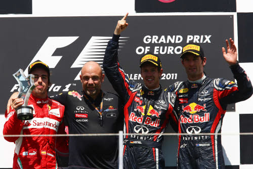 Il y avait du beau monde pour le Grand Prix de Formule 1 au Brésil remporté par Mark Webber ce dimanche. Gronaldo a fait le déplacement avec son fils Alex. Apparemment le kid n’apprécie pas trop… Il demande d’abord à son père, interviewé entre autres par Eddie Jordan, pour rentrer directement à la maison. Ensuite, le petit Alex fait comprendre qu’il n’en a rien à f***** de la course….