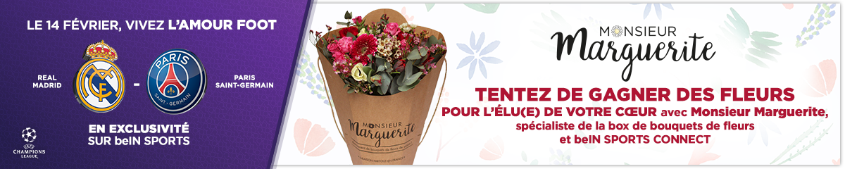 En plus de cette campagne publicitaire glamour produite par l’agence DDB Paris, beIN SPORTS a été plus loin pour fêter la Saint-Valentin comme il se doit. La chaîne du réseau qatarien va offrir une chance de gagner un des 500 bouquets du fleuriste Monsieur Marguerite à ceux qui souscriront au pass 3 mois « amour foot » de beIN SPORTS connect, l’offre digitale de la chaîne.