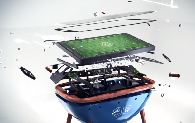 Pour la mise en place de ce dispositif, Volkswagen a travaillé avec DDB Paris et Unit 9. Pour la conception du baby-foot connecté, un écran plat 4K de 55 pouces, des haut-parleurs 5.1, des caméras intégrées pour filmer les joueurs ainsi qu’un puissant ordinateur connecté à internet ont été installés sur le baby au look incroyable. « C’est sur un design vintage, avec un contour et des pieds en bois, que nous nous sommes arrêtés, pour mieux illustrer le chemin parcouru entre un jeu qui date de 1880 et la multitude de technologies embarquées dans cette table. » expliquent les créatifs de l’agence DDB.