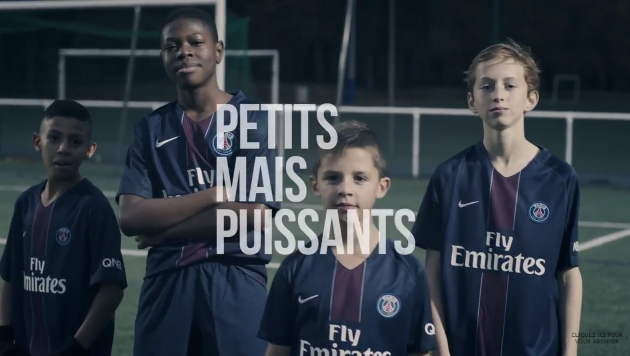 Mais plutôt que de mettre en avant les stars du club, la marque chinoise a misé sur l’image de jeunes portant le maillot du PSG… « Petits mais Puissants ».