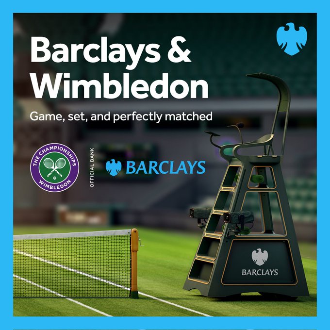 Nouvelle banque officielle de Wimbledon à partir de cette édition 2023, Barclays sera bien visible lors matchs sur les principaux courts, en s’affichant en grand sur les chaises d’arbitres, face caméra.