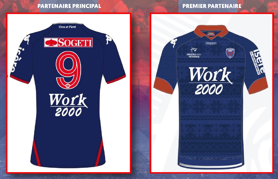 Dans le cadre de cet accord signé pour les 3 prochaines saisons, la société spécialisée dans l’emploi et l’intérim renforce son investissement dans le club en devenant le sponsor maillot face en remplacement de Sogeti. Jusque là, Work 2000 s’affichait au dos du maillot (voir plus bas). « Notre volonté de communiquer via le sport grenoblois se renforce auprès du FCG, en ayant l’objectif de développer la notoriété de Work 2000 au niveau national. C’est une réelle opportunité pour nous de construire ensemble une réussite réciproque. » a précisé David Pic, PDG de Work 2000, dans un communiqué.