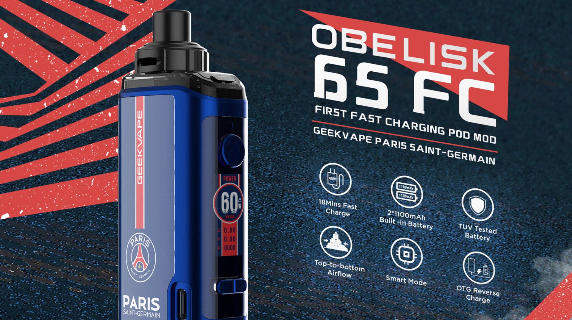 Geekvape présente les trois cigarettes frappées du logo parisien : la Aegis 1FC à la forme d’un stylo, la Aegis Solo 2 et la Obelisk 65 FC.